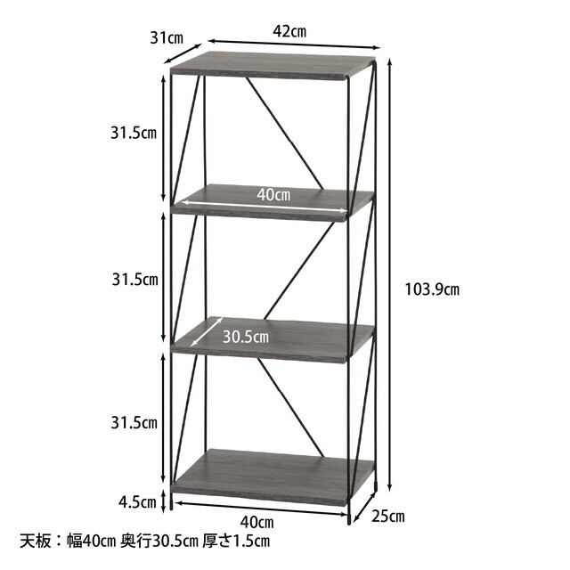 ●洗練されたグレーの仕上げが特徴で、どんなインテリアにも自然に調和するデザイン。高さ4段の構造により、より多くの収納スペースを確保しつつ、圧迫感を感じさせない使いやすさが実現されています。多様なニーズに応える実用的なアイテムです。