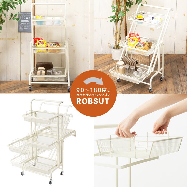 マルチワゴン ROBUST 3段 キッチンワゴン ラック 収納 多肉棚 収納 スリム トロリーワゴン