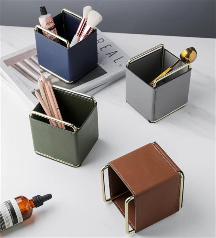 洗練されたデザインの収納ボックス、レザー製のデスクトップクリエイティブアイテム!オフィスや自宅のデスク周りをスタイリッシュに整理整頓します。
