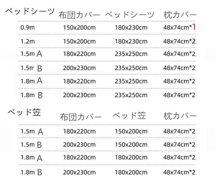 ●サイズ:シーツ(セミダブル 120cm×200cm)、掛け布団カバー(セミダブル 170cm×210cm)、枕カバー(70cm×50cm)