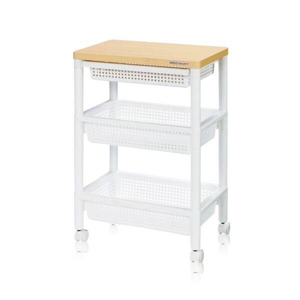 ウッドテーブルワゴンWTW-3HS 引き出しバスケット付 W