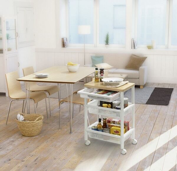 シンプルでありながら機能的なウッドテーブルワゴン WTW-3HS 引き出しバスケット付 Wが新登場です!あなたのリビングやキッチンをよりスタイリッシュに演出するおすすめのアイテムです。