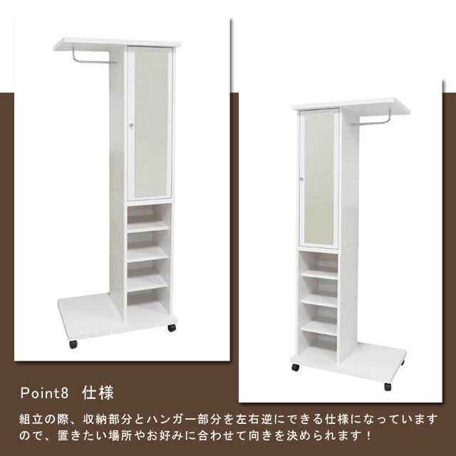 ●このハンガーラックは、大きな鏡が付いたデザインが特徴です!収納力にも優れ、衣類や小物をスッキリまとめることができます。鏡を使って毎日のスタイリングを楽しみながら、空間を有効活用しましょう!